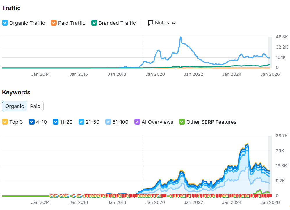 I worked for BrandsGateway for two years. During that time, we increased its organic traffic considerably, fixed the technical part, and used social media for increased online presence. Focus on blog posts, site and page optimization, and technical SEO.