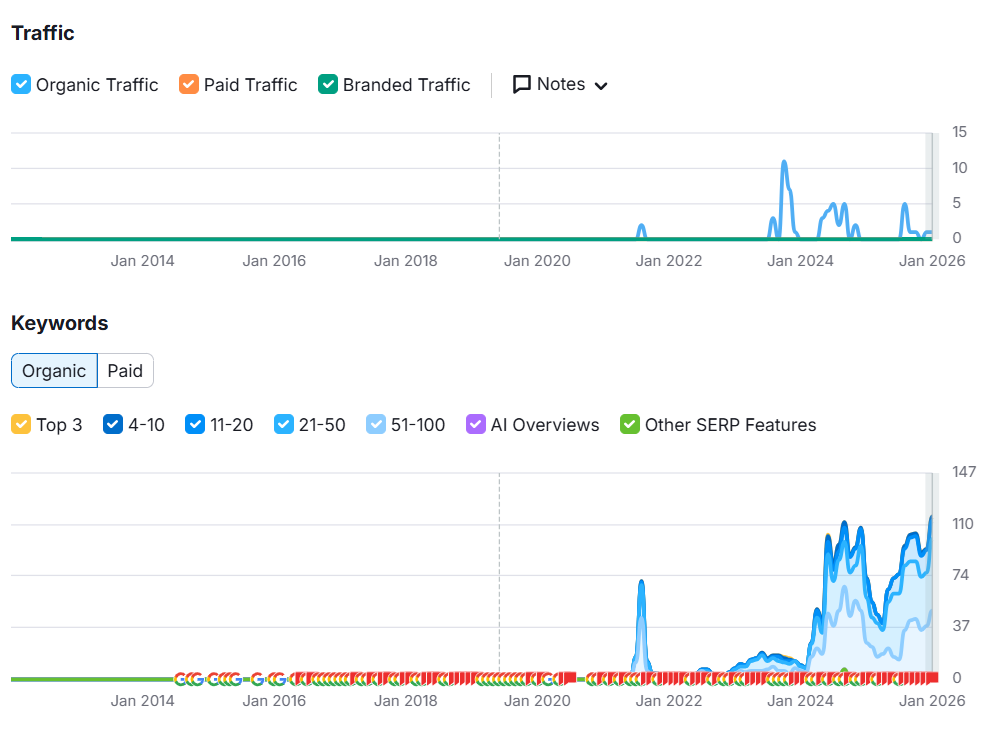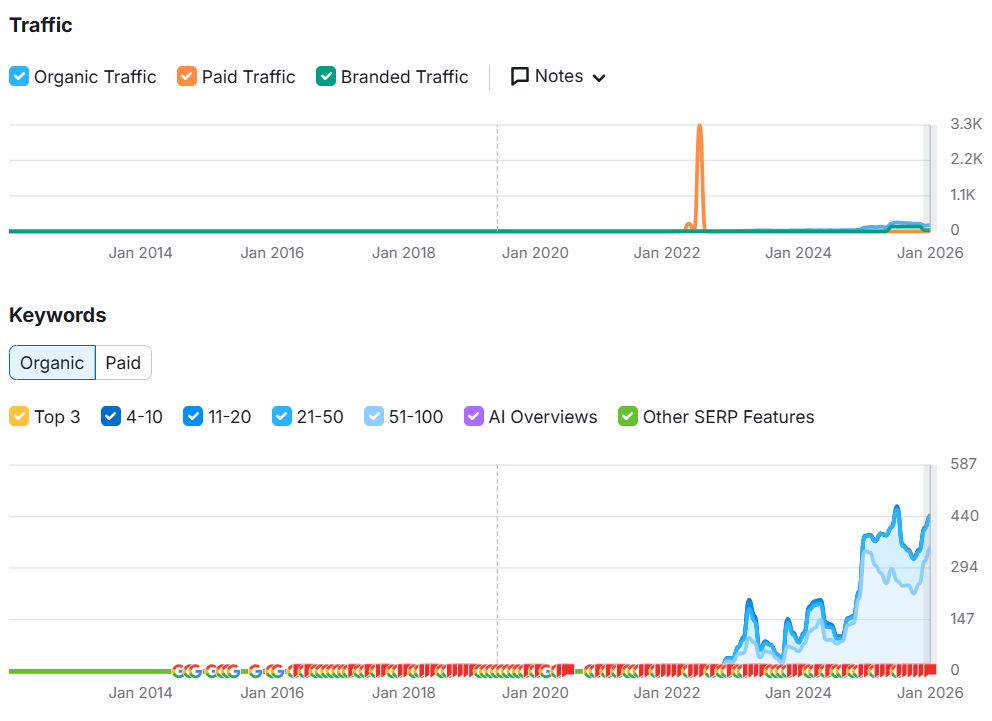 We focused mostly on creating new keyword opportunities and blog content. Organic traffic did show up, as potential leads now visit lemon.dev’s website. Results via Semrush.